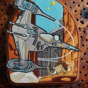 This patch features 2 Scout Troopers from Return of the Jedi and an At-St. Its big and bright and features metallic thread that shimmers in the sunlight. Its really beautiful.