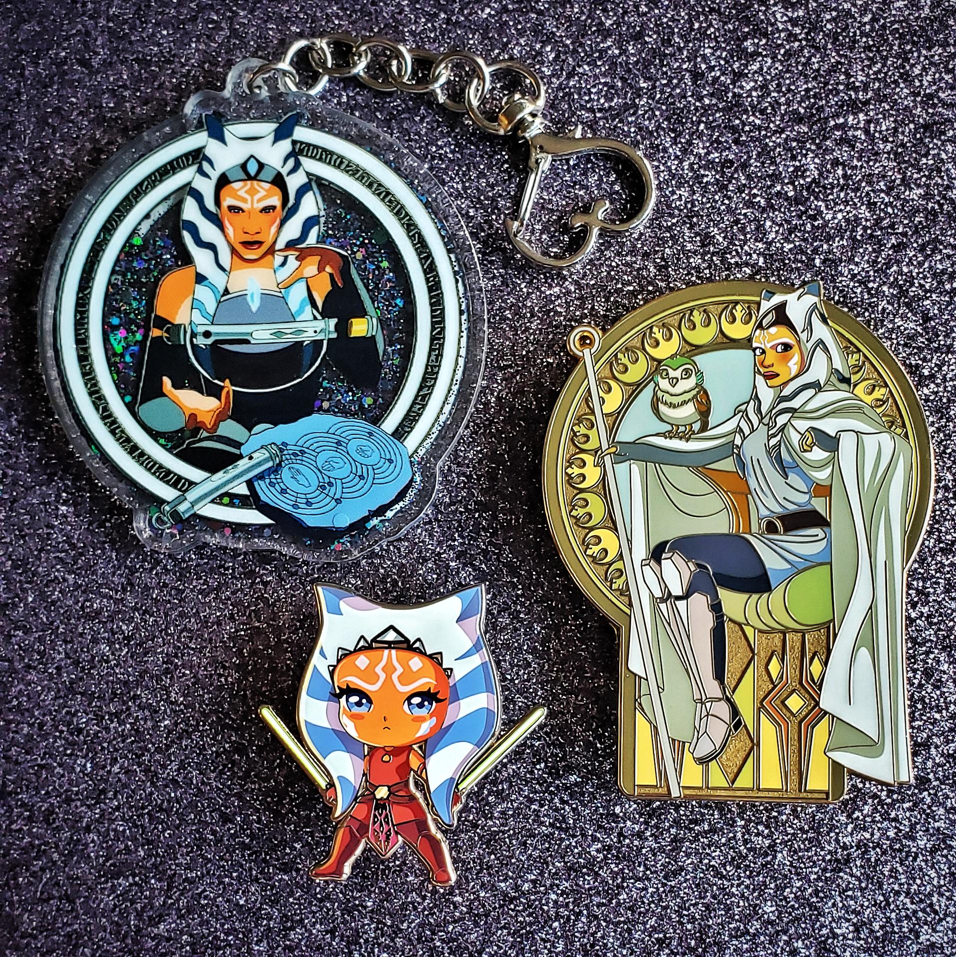 The 3 pin deal comes with the Specific Ahsoka glitter keychain, Ahsoka Clone Wars Chibi pin and this Ahsoka pin.
