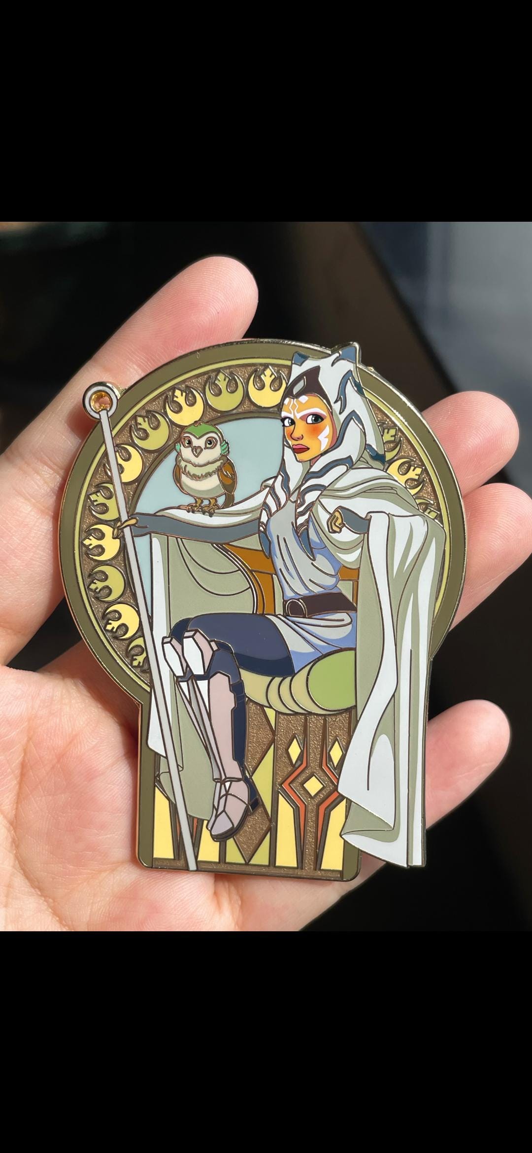 This is a beautiful hard enamel pin made of Ahsoka the White. It measures 3 inches tall with screen printed details. It is a limited edition of 50 and is individually numbered on the back.