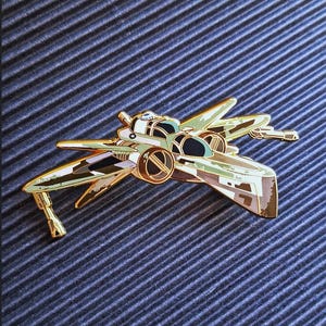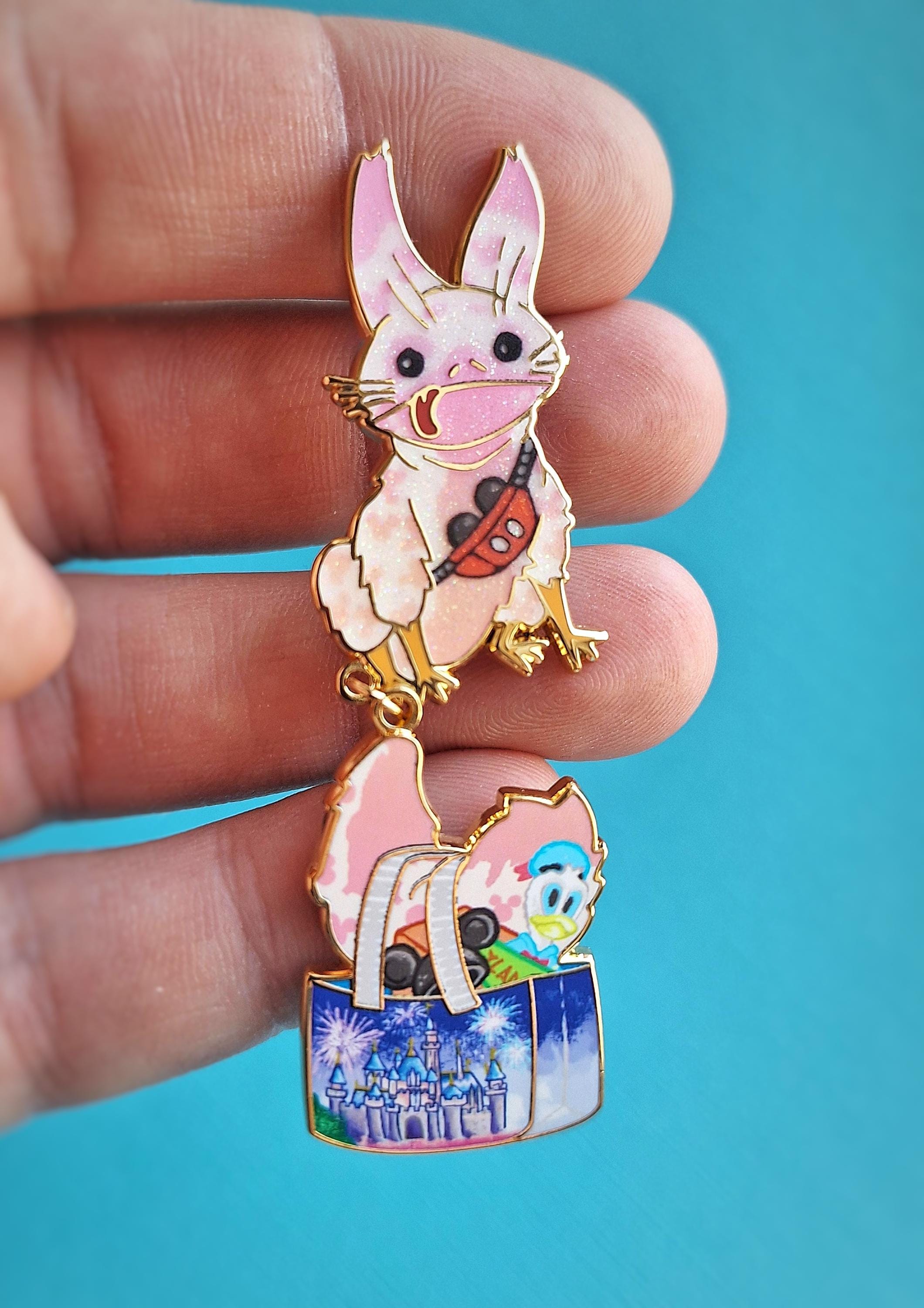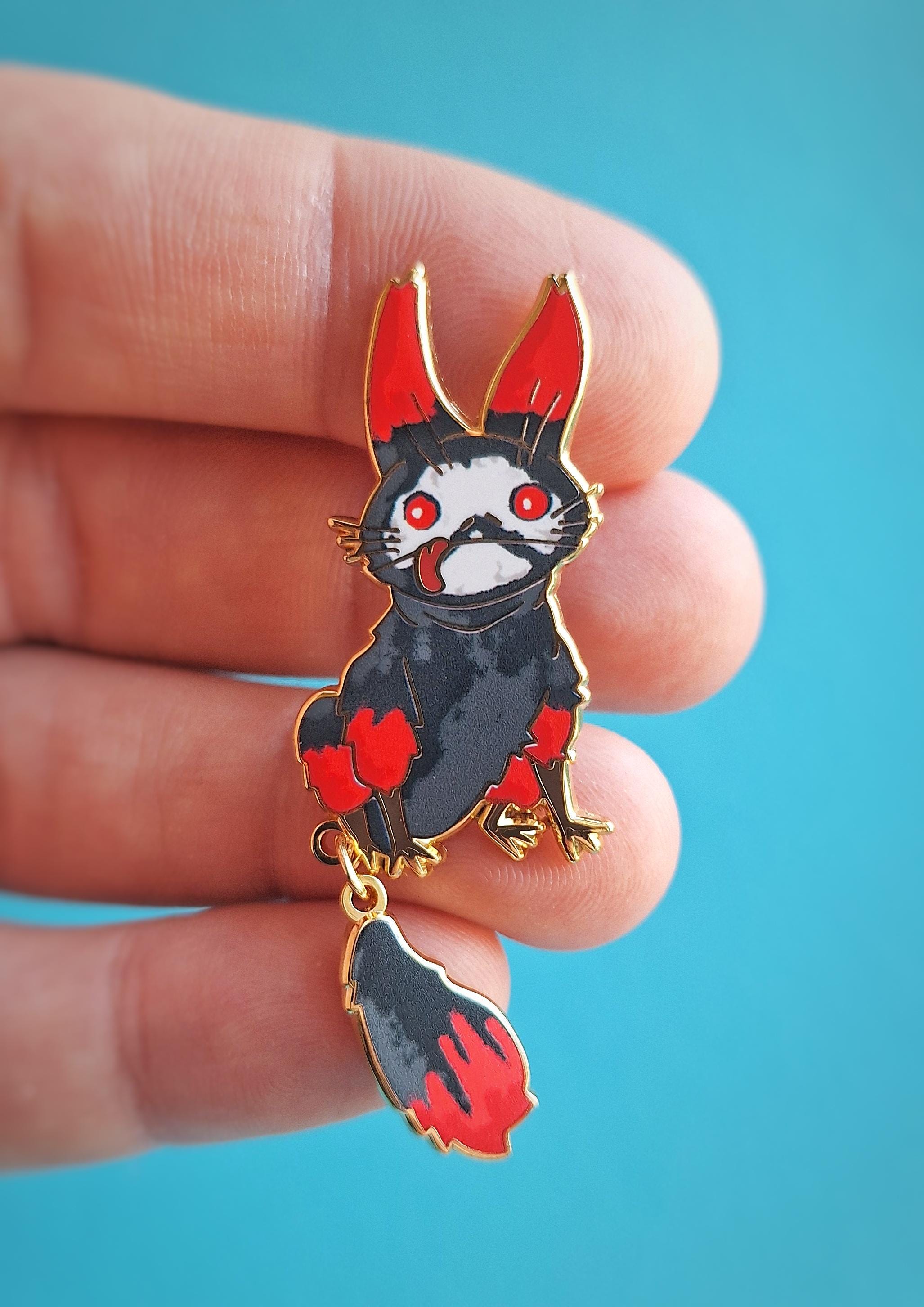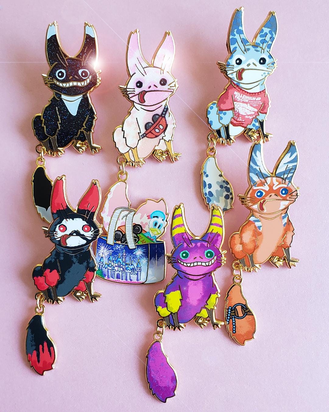 Each pin has 2 clasps on the back to keep it secure, but the tail does not so it can dangle freely. The pins are made of polished nickel with gold finish.