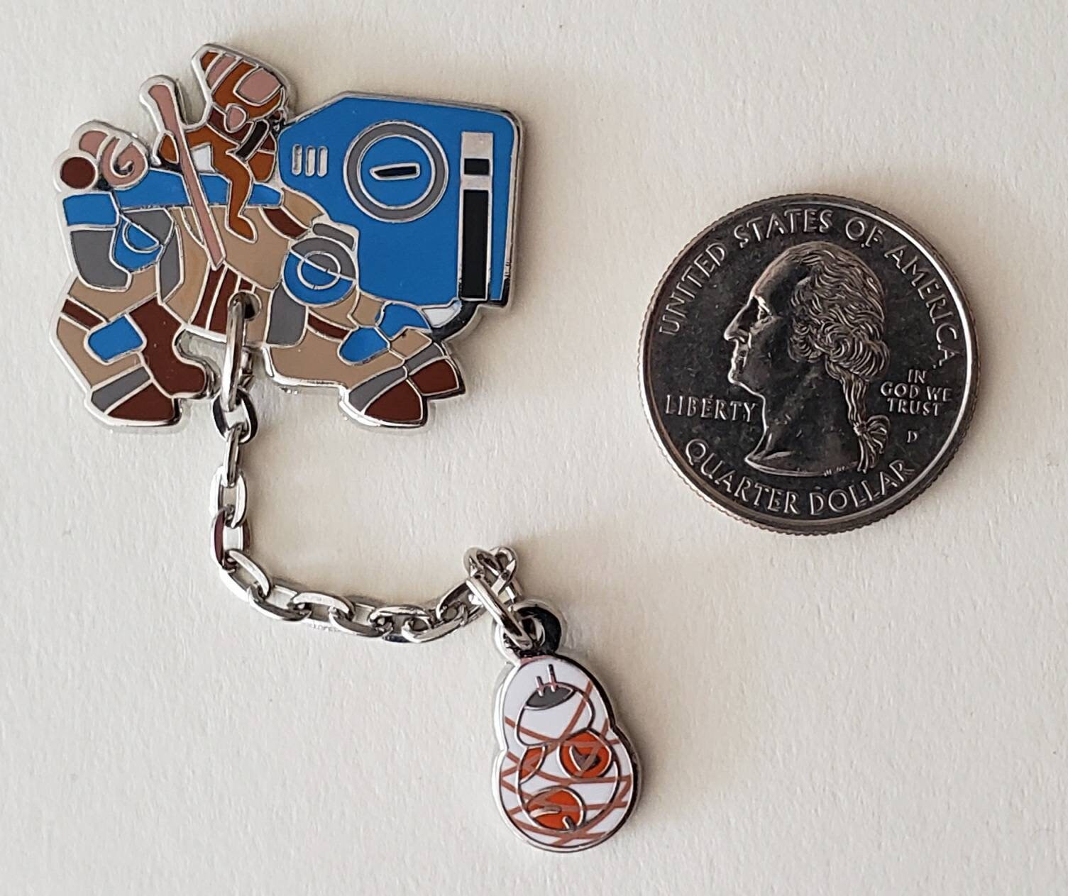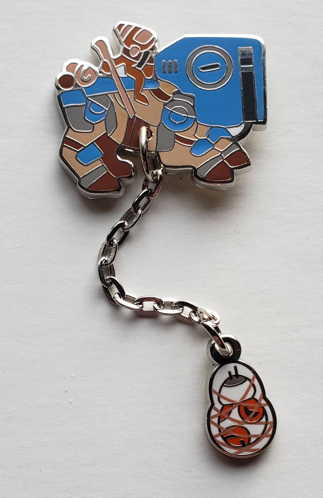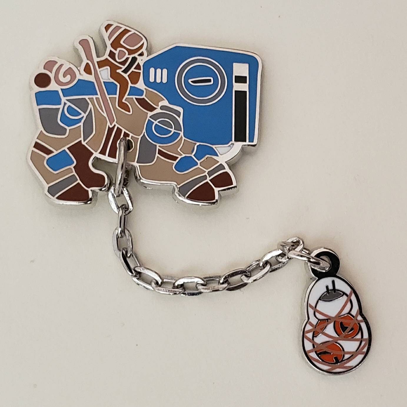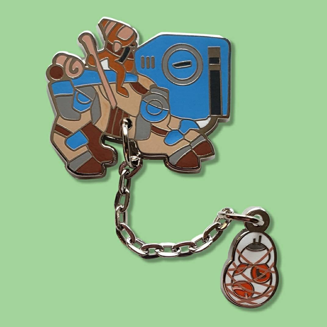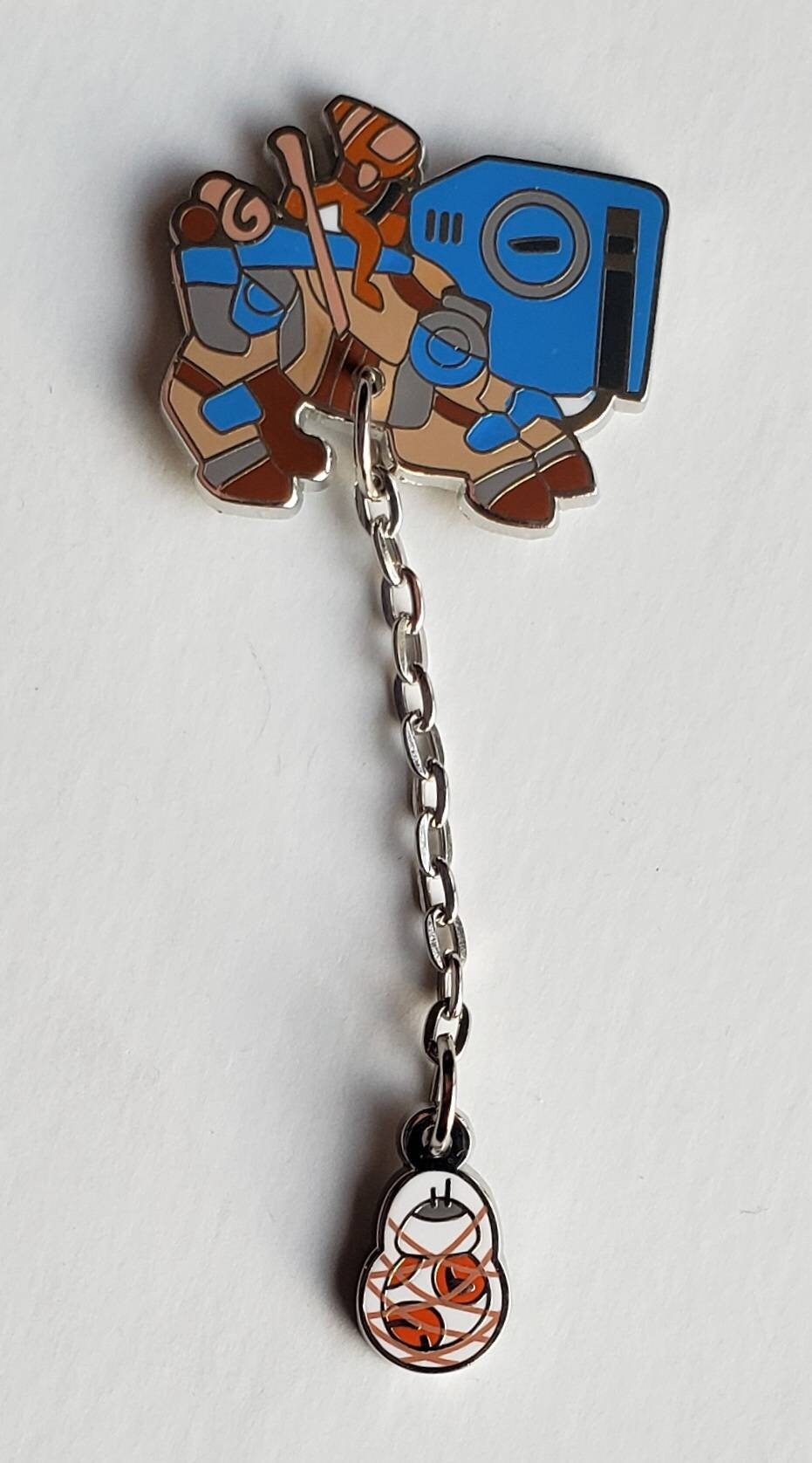 This charming pin features the Luggabeast when Teebo had captured Bb8 on Jakku. Its a hard enamel pin made with a polished nickel finish.